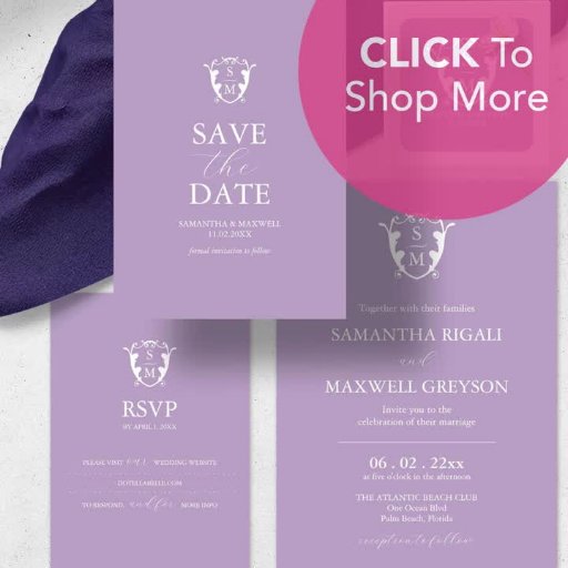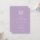 Elegant lilac wedding invitation features a minimal design with a monogram crest. Modern script typography with classic serif font in white. To shop the complete line visit www.zazzle.com/dotellabelle