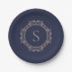 Elegant Monogram Modern Classic Navy Copper Blush Paper Plate