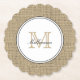 Elegant Monogram Name Country Chic Style Burlap Paper Coaster