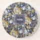 Elegant Blue and Yellow Floral William Morris Coaster with a name and monogram. Personalise with your name and monogram.
