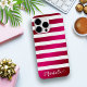 Elegant Monogram Name Hot Pink and White Stripes Case-Mate iPhone Case