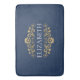 An elegant Navy Blue and gold flourish monogram bath mat. Add your name between the gold floral flourish on the front. Designed for you by Blackberry Boulevard.