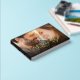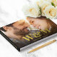 Elegant and chic wedding guest book featuring your photos on the front and back, overlayed with your monogram initials in large classic serif typography, your first names and your wedding date in your choice of real gold, silver or rose gold foil. Personalise your title on the black spine.