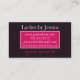 An elegant chic business card design for your eyelash speciality company. Hand-lettered script typography overlaid on a double pink border frame with a hot pink lush rose background. The additional line below for your title or company name. Multiple lines on the back to personalise with all your contact details. A beautiful yet simple design in pink and black that looks professional and modern.