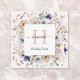 Elegant Monogram Pretty Beige Blue Flowers Floral Square Business Card