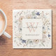 Elegant Monogram Pretty Beige Blue Flowers Floral Stone Coaster