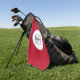 The elegant monogram red golf towel has a solid dark red background with a large white circle design outlined in grey. The last name monogram letter is centred in circle along with the full first name in black. This golf towel is great gift for Birthdays, Mother's Day and more!