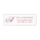An elegant minimalist return address label featuring your monogram initial in script typography. Personalize with your name and address in a simple dark red typography.