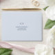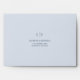 Simple wedding RSVP self addressed envelope featuring an elegant and timeless design with your two letter monogram and your return address in a serif font over light blue. Inside is a faux glitter in the same tint. A clean and classic design perfect for a traditional wedding invitation suite with a modern touch. These pre-addressed RSVP envelopes are a great time saver and will elevate the look of your invitation suite.