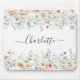 Elegant Monogram Rustic Rose Floral Greenery Mouse Pad
