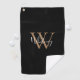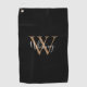 Simple elegant black gold and white script monogram golf towel. You can personalise the name, monogram and customise the font and colours to create your own unique design. Designed by Thisisnotme©