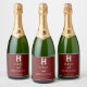 Elegant, minimal, burgundy red and white Initial sparkling wine labels. Modern Wedding, monogram, maroon script design. For bride and groom. You can change edit the design with names, initial and date.