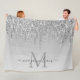 Elegant Monogram Silver Glitter Drips Fleece Blanket