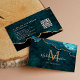 Elegant Monogram Teal Gold Agate Geode QR Code Business Card