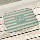 Elegant Monogram Turquoise Cream Stripes Coastal Bath Mat