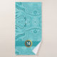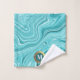 An elegant turquoise bath towel set with an abstract fluid marble pattern and a white monogram on a gold teal circle ready for you to personalise. These towels are both chic and stylish to help complement your existing decor.