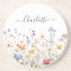Elegant Monogram Watercolor Colourful Wildflower Coaster