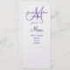Elegant Monogram Wedding Menu Cards Silver Purple