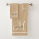Elegant Monogram White Script Name Tan Bath Towel Set