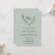 Elegant Monogram Wreath QR Code Sage Green Wedding Invitation... The front of our elegant monogram wedding invitation features a leafy botanical laurel wreath displaying the bride's and groom's initials above personalised invitation text in classic black serif and sans serif typography on a trendy sage green background. The back of the invitation displays your wedding website QR code as well as the website's URL itself allowing your invitees to easily RSVP online and view all of the details normally sent in a wedding packet. The example QR code and all example text (aside from the calligraphy elements) can be easily revised with your own information on the personalisation template.