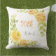Elegant Monogram Yellow Flower Wreath Wedding 50th Cushion