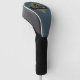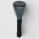 This elegant golf driver head cover features a classic black and blue pinstripe pattern with a gold emblem and customisable initial and name. This masculine design will make a great gift for coworkers, business executives, fathers, husbands, or groomsmen. Change the initial and name to fit your needs.