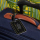 Travel in first-class style with this customisable luggage tag that features a classic black and grey plaid pattern accented with an elegant gold emblem and customisable name and initial on the front. The back has space to add a name, address, phone number and email address. This sophisticated masculine design will make a great gift for Father’s Day and men who like to travel in style.