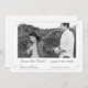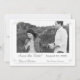 Design front features a customisable heading displayed in an elegant Nuptial font below the photo you supply. Names of bride and groom, plus city and state are also displayed in same elegant font. Date is shown in a clear, bold print. Design is framed with an elegant silver-coloured border.