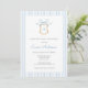 Southern Preppy monogrammed crest with blue bow Boy Baby shower invitation with blue and white pin stripe border.
