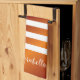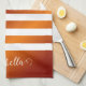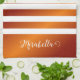 Create a unique personalised kitchen towel decorated with desert orange and white striped pattern. The template makes it easy to type a name.