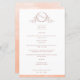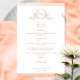 Elegant Monogrammed Peach Watercolor Wedding Menu