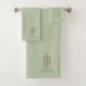 Add a touch of elegance to your bath towels with a personal monogram with coloured elegant typography initials on sage green.