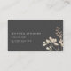 This gorgeous business card design features neutral boho florals, a moody dark grey background, and elegant typography. The reverse side features the same dark grey background with classic typography. Simply add your name and contact info. It has a chic, modern look and would make a fabulous first impression for your business. You can easily customise this card by changing the script font and contact info.