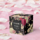 Elegant moody floral pattern thank you wedding favour box for guests includes a beautiful red, blush pink, and white floral and greenery pattern on a dramatic black background with customisable thank you text.
