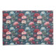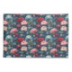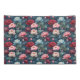 Elegant moody modern lotus flower pattern with dark and light blue, dark wine red and rose red, pink and white, and light and dark teal green jewel tones in a maximalist style design.