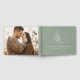 Designed to coordinate with our Elegant Botanical Moon and Stars wedding collection, this boho wedding guest book features a white line art illustration of a moon adorned with stars and foliage with a sage green background. Personalise the front of the moon wedding guest book with your names and date. Your horizontal engagement photo is displayed on the back of the guest book