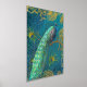 One of Audrey Jeanne's most loved paintings now available with real gold foil accents! This peacock is mysterious and elegant with gilded scrollwork, Peacock feathers and a midnight blue, teal and aqua background. Painted in oil pastel by internationally licensed artist and designer, Audrey Jeanne Roberts, copyright.