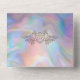 Elegant Mother-of-Pearl, colourful Wedding All-in-One Invitation (includes tear-off R.S.V.P.) with intricate flourishes. The mother-of-pearl background shimmers with colourful hues, adding a touch of iridescent elegance. Fully monogrammed in sophisticated grey script, allowing you to customise the details as you prefer.