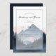 This is a minimalist style image featuring an elegant wedding invitation set against a serene mountain backdrop. The soft pastel colors and clean typography create a tranquil, sophisticated mood. The design beautifully combines nature's grandeur with refined elegance, making it perfect for couples who love the outdoors and appreciate understated beauty in their special day.