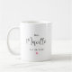 This minimalist wedding mug features Mrs. in delicate script with a custom last name in beautiful flowing calligraphy, an established wedding date, and a sweet pink heart accent. The clean, airy layout on a crisp white background lets the elegant typography shine. The last name and date are fully editable for a personalised keepsake. A lovely gift for the bride, newlywed, bridal shower, or engagement celebration.