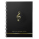 This modern and elegant black notebook features a treble clef in faux gold. Perfect for music school offices, music teachers, students and more. Customise it with your own details and utilise the editing tool to make further adjustments, such as font size and placement.