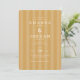 This elegant wedding invitation features a warm, mustard-yellow background with subtle vertical stripes that add texture and depth. The design employs a classic serif font for a sophisticated look, emphasizing the union of two individuals with ample spacing between names and key details. The layout is clean and well-organised, ensuring clarity and readability while maintaining an understated formality. Perfect for couples seeking a timeless and refined aesthetic, this invitation sets the tone for a memorable celebration.