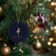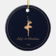 Personalize this modern and elegant 'My First Christmas' ornament with your baby girl's photo, her name, and the year of her birth. Featuring a modern dark-blue background and a delicate pattern of graceful ballerina. Photo tip: crop photo to a square format before uploading to the site.