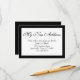 Keep your friends and family up to date with your new address using these simple, elegant enclosure cards. A simple note reads "My New Address" at the top, using a pretty, traditional script font. Use the template fields to add all your details to personalise this design for your own use. The black type was placed over editable white with a wide border, and matching solid reverse; you can change these backgrounds and all type to any colour you wish. Likewise the fonts can be changed if you prefer any changes to the look.