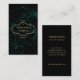 A dark, moody floral pattern in forest green set the tone for sophistication on this designer business card. Elevate your brand with an elegant presentation—your name or business name takes centre stage in luxurious faux gold writing, framed within an ornate gold box. Make a lasting impression with cards that seamlessly blend opulence and botanical allure. Your contact info is elegantly displayed on the back. Art and design © 1201AM Design Studio - www.1201am.com