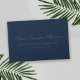 Memorial service guest book in navy blue with blue text. Add your loved one's name in a gorgeous script.