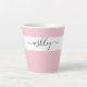 Personalized latte mug with elegant script typography and minimalist design. The template is set up for you to add your name in black and white. A modern, simple and trendy design in girly pink or, if you prefer, you can change the background color. (message me if you need assistance).