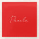 Elegant Name Minimalist Classical Warm Red Glass Coaster
