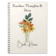 Traditional paper quilled flowers on a floral white background, "Random Thoughts & Ideas" in open-face font and elegant script name are featured on this notebook for planning, journaling, sketching or keeping notes. Ideal keepsake for a paper crafter. Easily change text and name to make it yours using the Template provided. The notebook contains 80 pages, college lined in black and measures 6.5" x 8.75". See "About This Product" for more information.