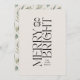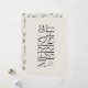 Elegant typography modern minimal natural cream watercolor botanical typography Merry and bright Christmas holiday flat card.